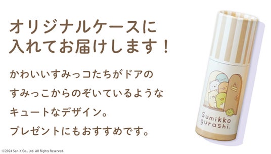 ドアからこちらをのぞいている姿がとってもかわいい専用ケース付き。そのままお部屋に飾りたくなるかわいさです(ケースはセルフインクタイプ、木彫りタイプいずれも付属します)。
