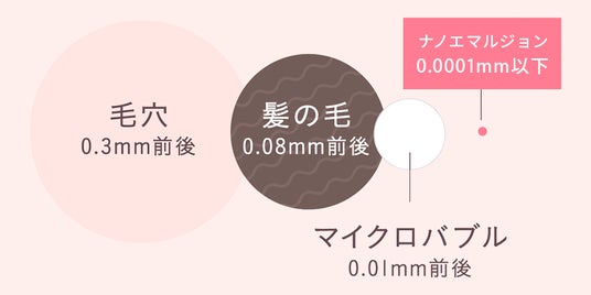 毛穴の約1/3000サイズのナノエマルジョン化した粒子が角質層の隅々まで瞬感浸透。うるおいを抱え込み、使い続けるほど透き通るもっちり肌へ導きます。
