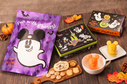 今年も、ハロウィーンで盛り上がるパークを楽しんでいるゴーストたちがモチーフになったグッズが登場します。魔法使いになりきっているぬいぐるみバッジや、形がかわいいスープもなかなどハロウィーンならではのユニークなグッズを販売するほか、ゴーストとミッキーシェイプのポンポンが付いたカチューシャなど、身に着けてゴーストと一緒にパークを楽しめるグッズも登場します。