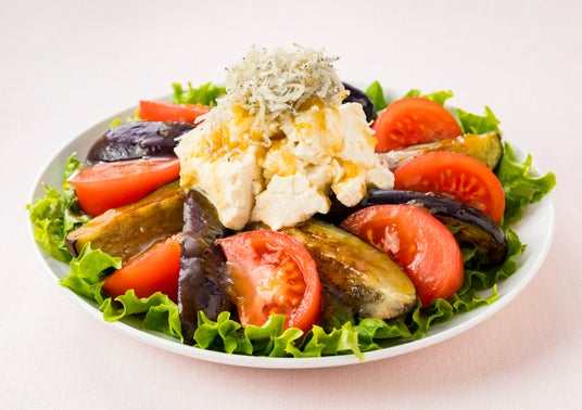 メニュー例:豆腐となすとじゃこのサラダ(「きざみ玉葱」使用)