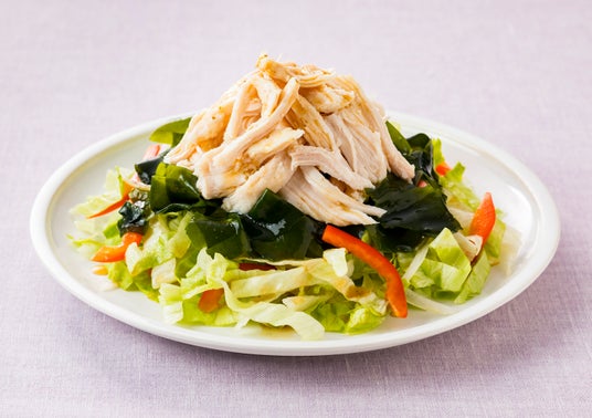 メニュー例:サラダチキンとわかめのサラダ(「青じそ」使用)