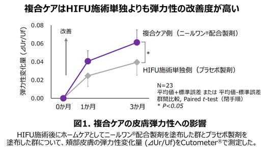 ニールワン(R)配合製剤併用による複合ケアでHIFU施術による皮膚弾力性の改善効果がアップ