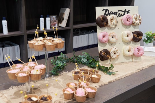 見た目が華やかなドーナツや、野菜と果物100%のコールドプレスジュースで来場者の方をお出迎え。