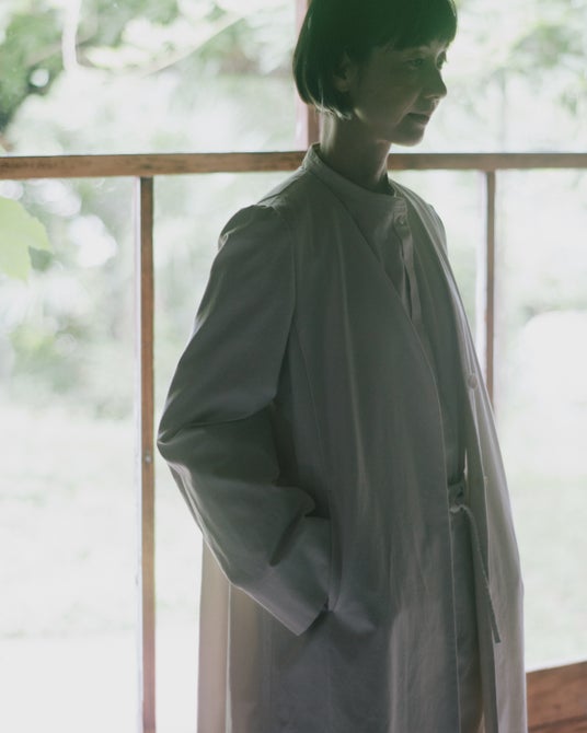 カジュアルなスウェットスタイルも含め、心を寛がせながらもクリーンな印象を保てるよう配慮を重ねたきれいなシルエットが特徴の日常服です。丁寧にデザインを重ねながらも、身近な存在として手に取っていただけるように。