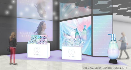 発売を記念し、@cosme OSAKAにてブランド初の単独POP UP STOREを2024年8月28日(水)から9月3日(火)の1週間限定で開催。8月30日(金)から9月3日(火)の5日間は新シリーズ「オーロラ」の特別展開を実施いたします。期間中は来場者全員※2に「hiritu」をお試しいただける1DAYトライアルのお渡しや、購入者様限定で、POP UPだけのスペシャルプレゼントのご用意もございます。