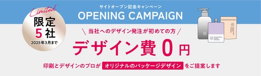 サイトのオープニングキャンペーンとして、2025年3月まで先着限定5社、当社へのデザイン発注が初めてのお客様に限り、印刷とデザインのプロがオリジナルのパッケージデザインを0円でご提案します。詳細はサイトの特設ページ、またはチラシをダウンロードしてご確認ください。