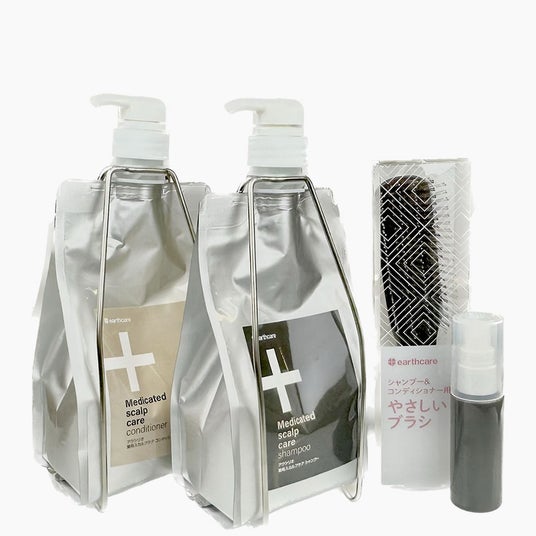 「薬用スカルプケアシャンプー・コンディショナー」(医薬部外品)は、「やさしいブラシ」を使うのに適した「粘度」や「泡切れ」などにこだわって作られています。