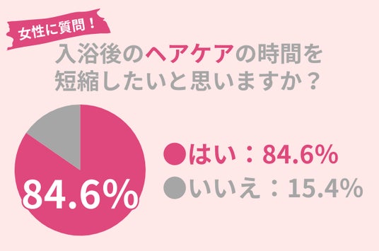 調査の結果、84.6%と大部分の方が、「入浴後のヘアケアの時間を短縮したい」と考えていることがわかりました。
