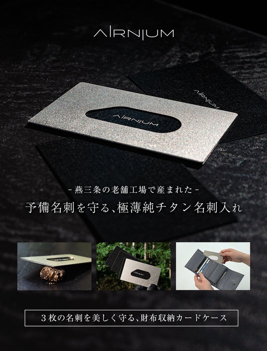 【財布に忍ぶ、極薄1.6mm/デキるビジネスマンの新常識】予備の名刺を守る「極薄チタン名刺入れ AIRNIUM(エアニウム)」をMakuakeにて発表。