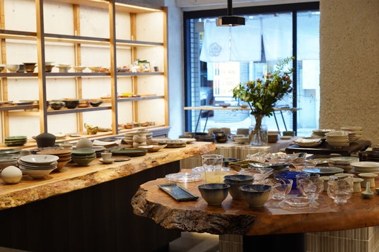 京橋白木株式会社うつわ御結、新店舗で再出発。唐津焼をはじめとする全国から選りすぐりの陶器・漆器およそ600点が店頭に並ぶ。金継ぎ品が並ぶ一角も設け、100年使い続ける陶芸文化を発信。