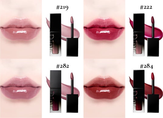 Dintoの人気商品であるブラーグロイリップティントは、4色(#219/#222/#282/#284)のラインナップで展開されています。カラーは古典文学者マルクス・アウレリウスの「自省録」の名言をコンセプトにした色合いなど、トレンドに合わせたDintoならではの絶妙なカラーが特徴。軽く透明感のある水ツヤでじゅわっと発色するテクスチャーが、唇にしっとりとムラなく馴染みます。乾燥しにくく、ガラス玉のようなうるつや感を持つティントです。
