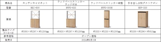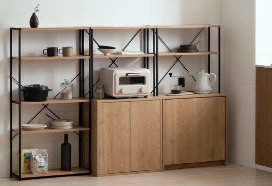 デスクやキャビネット、ペールストッカーなどを中心に11種類の商品をラインアップし、生活スタイルに合わせて自由に組み合わせられます。また、コンパクトなサイズで収納スペースを広くできるよう設計しているので、オーブントースターなどの家電から食器、食料品など様々な組み合わせで収納できます。