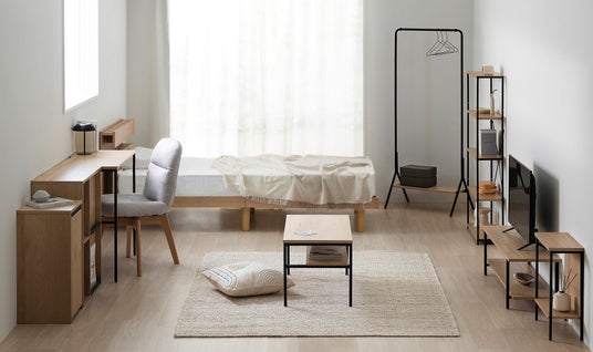今回発売する「HIRO BIRO series シンプル/ベーシック」は、既存の製品のコンセプトを継承しながら、シンプルな機能とデザインを追求したシリーズです。ナチュラルな木目とスチールの組み合わせのデザインで統一することで、部屋全体の統一感を保てます。また、高さや奥行を合わせることで、組み合わせをした時に凸凹が無く、広く綺麗に設置できます。