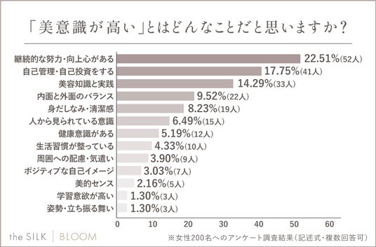 the SILK編集部では今回、「美意識が高い人の特徴」について200名の女性に独自アンケート調査を実施しました。