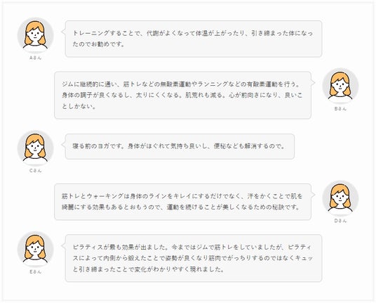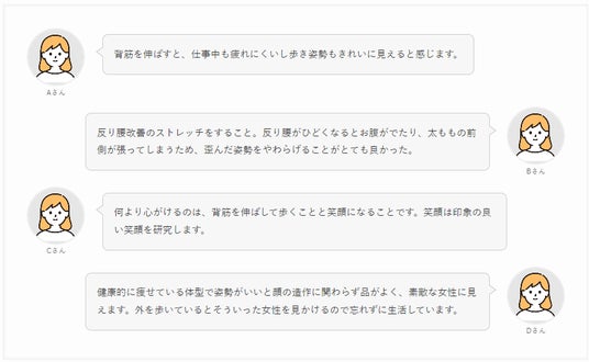 中には、「ヨガやピラティスは美しい姿勢と柔軟性を保つために効果的」と答えた人も!