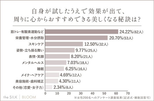 効果があったと感じた美しくなる秘訣第1位は「筋トレ・有酸素運動」でした!