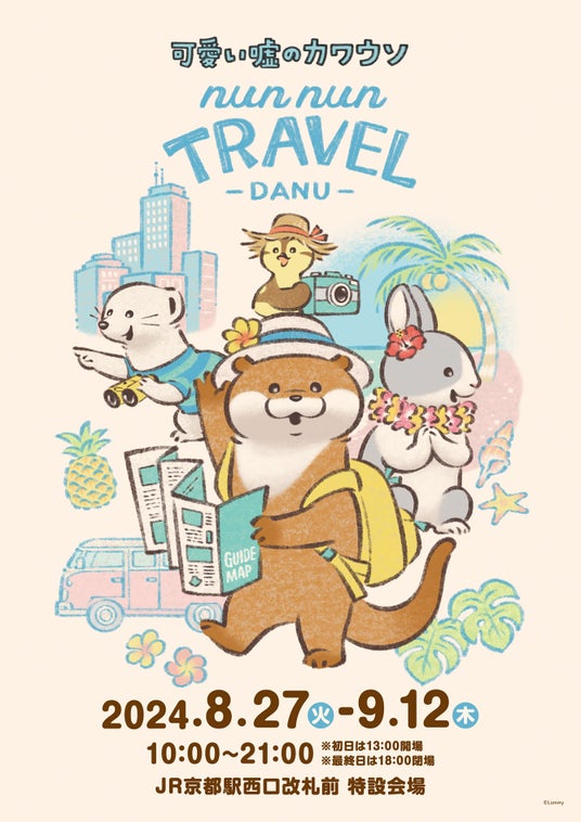 オリジナル商品の企画・制作・販売を軸に、企業・組織のトータルブランディングを手掛ける株式会社ヘソプロダクション(本社:大阪市福島区・代表取締役:稲本ミノル)は、2024年8月27日(火)から9月12日(木)までの間、JR 京都駅西口前 特設会場にて、期間限定ポップアップショップ『可愛い嘘のカワウソ ぬんぬんトラベルだぬ!@JR京都駅』を開催いたします。