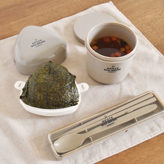 - おにぎり1個とおかずを持ち運びできるケース。中ブタは取り外しても使えるので爆弾おにぎりなどにもぴったりです。ラップをしいてからご飯をつめれば簡単におにぎりが作れます。おにぎりとスープポットランチなどにおすすめです。