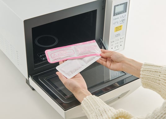 ※1:本品を専用布カバーから取り出し、V字型になるよう2つ折りにして家庭用電子レンジ500W/600Wで約15秒加熱。