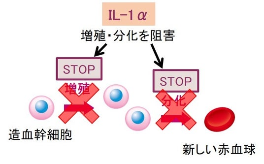 図4. 造血幹細胞の増殖と赤血球への分化を阻害するIL-1α