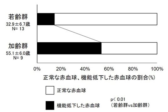 機能低下した赤血球の割合比較(加齢群と若齢群)