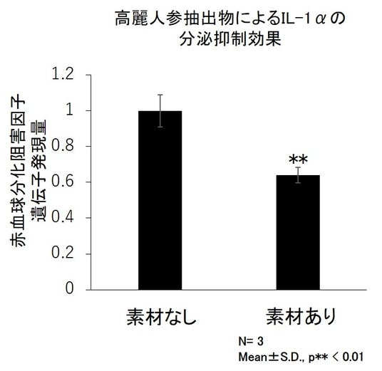 その結果、「高麗人参」の抽出物に、IL-1αの分泌を抑制する効果を発見しました(図5)。