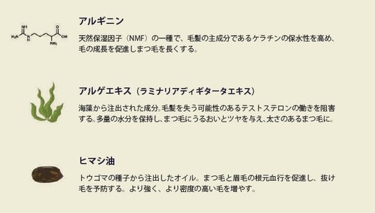 100% ナチュラルなまつげ美容液。皮膚科専門医と毛髪専門医による臨床試験と承認を受けており、科学に基づいた強力なアダプトゲン成分を配合した、ウォーターレス処方。一滴一滴があなたの髪と肌に蜜のように良い効果をもたらします。アダプトゲン成分として、ツボクサエキス、ゴボウ根エキス、スギナ花/葉/茎エキスなどの植物を使用しており、相乗効果でまつ毛の根元を活性化し、まつ毛の厚みと持続性を高めます。