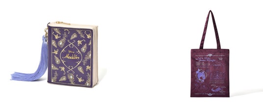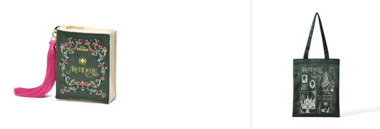 物語の最初の1ページをイメージしたデザインのトートバッグです。各作品のストーリーにまつわるモチーフがふんだんに盛り込まれています。大人の女性でも日常使いしやすいよう、落ち着いた高級感あるカラーで統一しています。ノートPCも入るサイズで背面にはジッパーポケットが付いており機能性にも優れています。