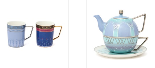 「エルサ」の魔法で出来上がる氷の城を表現したティーポットとカップ&ソーサーがセットになったアイテムです。物語の象徴的なワンシーンをイメージしています。