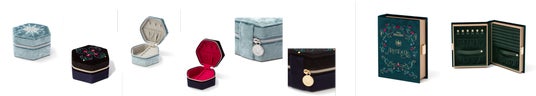 「アラジン」と「ジーニー」をイメージし、ランプと孔雀の羽を刺繍で施したデザインのブック型ジェリーボックスです。魔法の物語を開くように、大切なジュエリーを収納することができます。