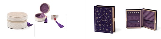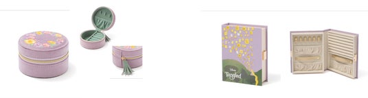 劇中で「ラプンツェル」が塔の壁に描いたランタンの絵画をモチーフに刺繍を施したブック型ジェリーボックスです。「フリン」との物語がここから始まります。魔法の物語を開くように、大切なジュエリーを収納することができます。