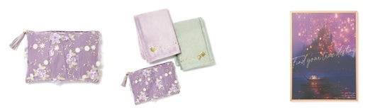 大切なだれかとお揃いで使えるペアスローです。スローを収納するポーチは「ラプンツェル」をイメージしたチュール生地に、「フリン」の身に付けている皮製品をイメージしたタッセルのチャームが付いています。フランネル生地のスローの端には、物語を象徴するモチーフが箔プリントで施されており、繋がるデザインになっています。