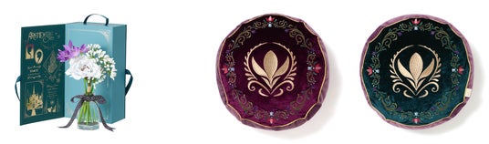 白樺や凍った湖など、北欧の冬をイメージした香りのフレグランスです。アレンデールの国花であるクロッカスと、銀世界をイメージした大きな白い花を組み合わせました。ブック型の箱を開くと中扉に物語の1ページがデザインされており、開いたページの前にボトルを置けば、物語の世界観を楽しみながら飾ることができます。