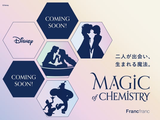 株式会社Francfranc(本社:東京都港区、代表取締役 社長執行役員 佐野一幸)が運営する、インテリアショップ『Francfranc(フランフラン)』は、5つのディズニー・アニメーション映画をコンセプトに開発した新しい商品シリーズ「MAGIC of CHEMISTRY(マジック オブ ケミストリー)」を2024年9月6日(金)より全国のFrancfranc店舗※1、およびFrancfrancオンラインショップで展開します。第一弾として、『アナと雪の女王』、『塔の上のラプンツェル』、『アラジン』の作品からインスパイアされた、日常に魔法がかかり、心高鳴る瞬間をインテリアアイテムに落とし込んだ新シリーズをご紹介します。
