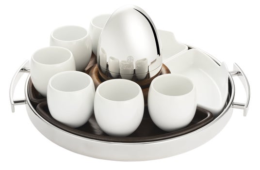 クリストフルのアイコニックなコレクション「MOOD ムード」。様々なダイニングシーンで活躍するカトラリーが卵型のケースに収められ、インテリアにもなる新時代のカトラリーセット。