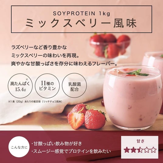 「美味しさ」にこだわった THE PROTEIN(通称:ザプロ)からソイプロテインシリーズに甘酸っぱく、さわやかな味わいの〈ミックスベリー風味〉が新登場!!