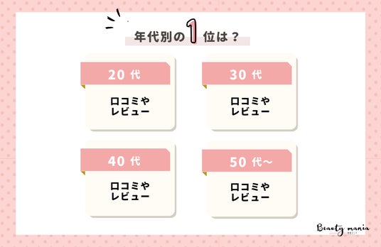 ・口コミやレビューはあくまで一般ていな意見として利用し、同じ肌質の友人や家族からの意見はリアルなレビューと思い参考にする。(40代/敏感肌)