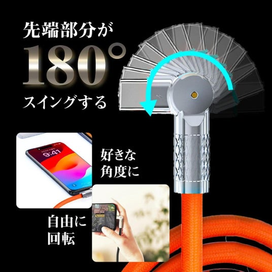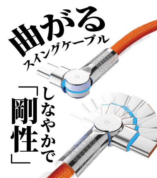 【先端が自在に180°曲がる】「スイングUSBケーブル」に引張強度と捻れ剛性をアップさせた、高耐久ナイロン素材採用の新作モデルを公開!