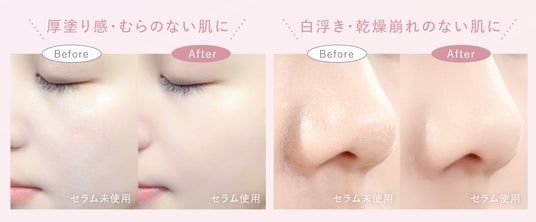 メイク前セラムを使用した後、下地を塗る際にべたつかず、モロモロが出にくいようにみずみずしく軽いテクスチャーにこだわりました。美容成分とオイルを贅沢に配合したセラムが、お肌を内側からしっかり保湿し、ぷるんっと水分感のあるお肌に仕上げます。