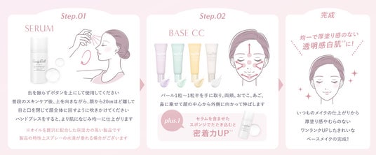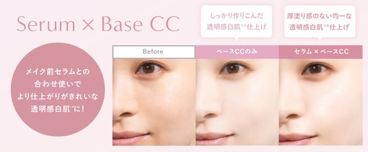 “メイク前セラム”と合わせて使うことで、より厚塗り感のない均一な透明感白肌(※4)を作ることが出来ます。
