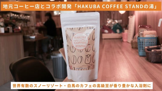 「HAKUBA COFFEE STANDの湯」は、JR白馬駅前にあるコーヒー店「HAKUBA COFFEE STAND(ハクバコーヒースタンド)とのコラボレーションにより開発した入浴剤です。2024年8月28日(水)よりクラウドファンディングサイトMakuakeにて先行予約販売を行います。現時点ではMakuakeのみで販売しており、どこよりも早くご購入いただけます。
