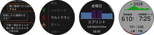 - スポーツ機能:ランニング、トレイルラン、ウルトララン、サイクリング、トライアスロン、アドベンチャーレースなど100種類以上