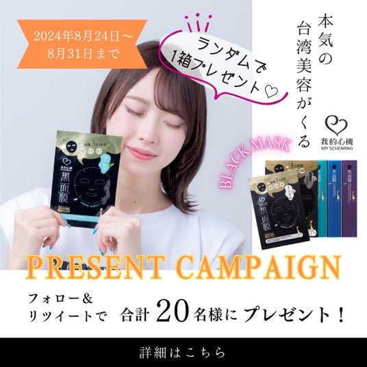 「我的心機」は、台湾で年間数億枚を売り上げる大人気フェイシャルマスクブランドです。「全てのマーケティングを製品開発へ」をモットーとしており、製品開発以外のムダな経費を削減し、広告費をかけず、商品開発に注力しております。この度、カシスオレンジのアンバサダー就任記念としてXにてプレゼントキャンペーンを実施しております。