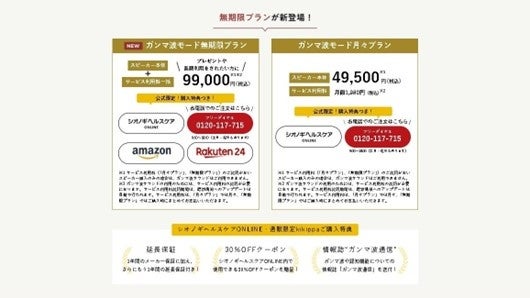 シオノギヘルスケアONLINEでは、コールセンターのみで「ガンマ波モード 無期限プラン」を販売しておりましたが、今回よりオンラインでの購入も可能となります。