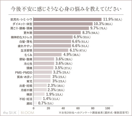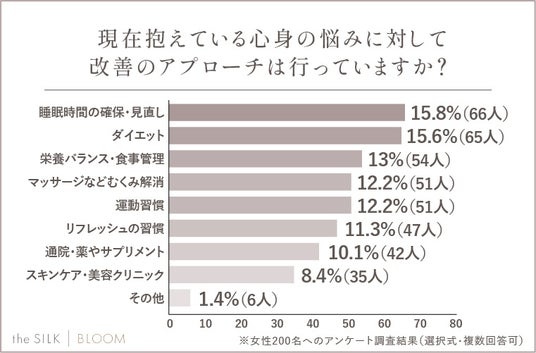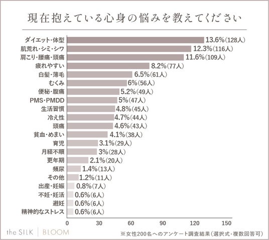 株式会社HYV株式会社HYV(本社:東京都目黒区、代表取締役:茅野 航平)が運営する「the SILK BLOOM」では、「女性の身体の悩みランキング」に関するアンケート調査を実施いたしました。