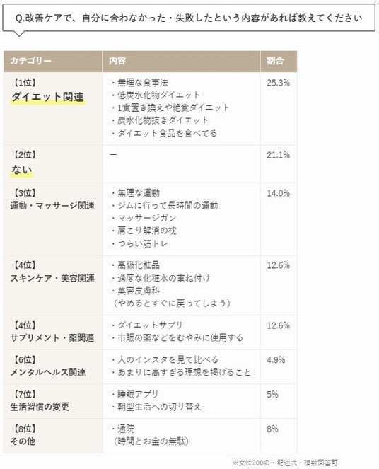悩み改善策として「ダイエット」が第2位にランクイン。