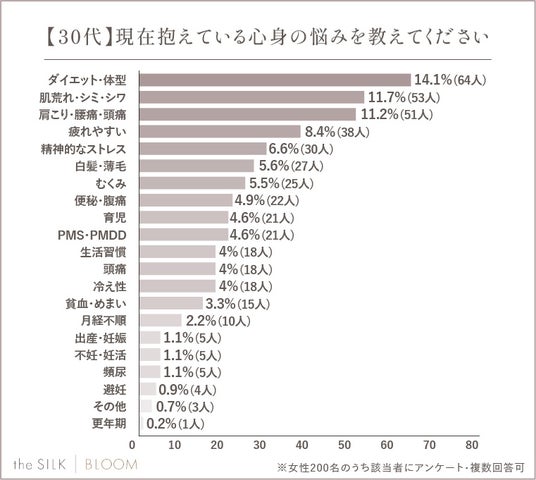 今回the SILK編集部では、200名の女性を対象にアンケート調査を行い、年代別の体の悩みランキングを明らかにしました!