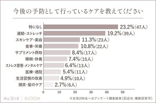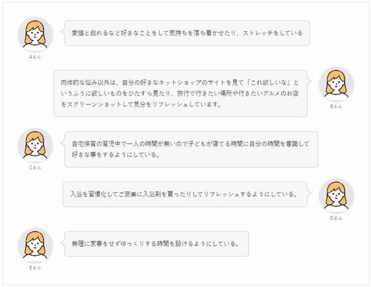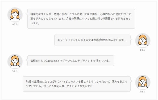 中には婦人科での相談や漢方薬の利用を検討していたり、ヨガやピラティスなどのリラックス効果のある運動を取り入れたりする人もいました。