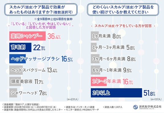 近代化学株式会社スカルプ(頭皮)ケア製品は2年以上使い続けている方が半数以上