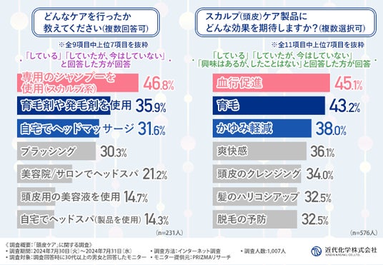 頭皮ケアを行っている方の割合や、スカルプ製品に期待する効果などが判明しました。
